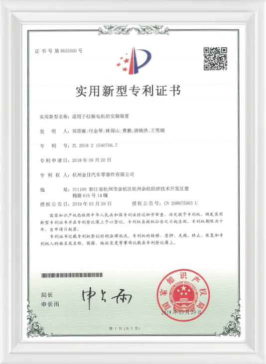 Certifikát úžitkového vzoru pre montážne zariadenie vhodné na montáž motorov
