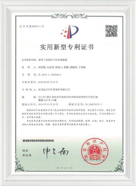 Patentový certifikát úžitkového vzoru pre lisovacie zariadenie vhodné pre rotor motora