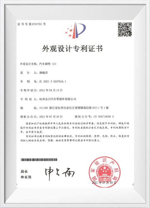 Osvedčenie o registrácii ochrannej známky pre podložky pod nohy