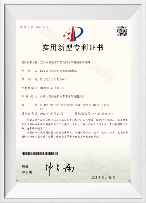 Krížovo naklonený horný mechanizmus uvoľňovania foriem pre formy držiakov spätných zrkadiel v automobiloch