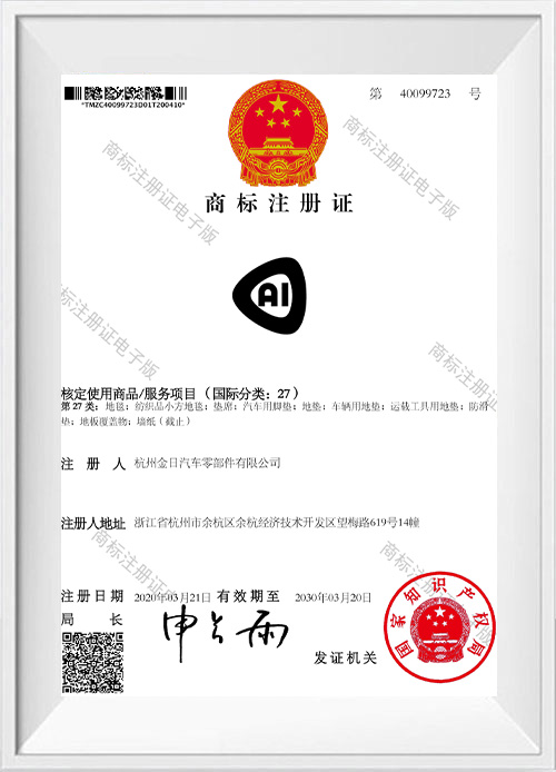 Osvedčenie o registrácii ochrannej známky pre podložky pod nohy